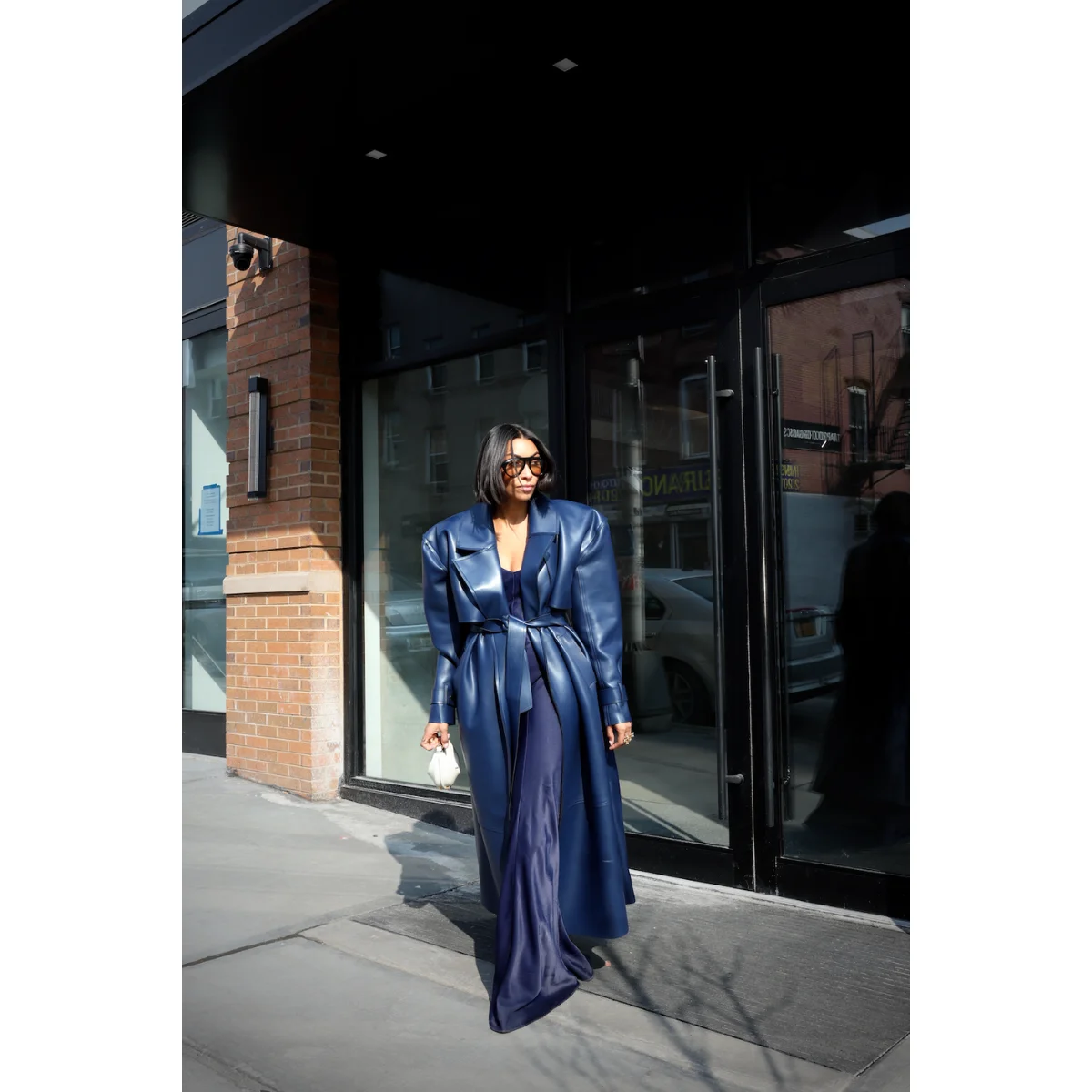 Almost the end of the week, but yet another busy day! I loved wearing this Naked Wardrobe leather trench coat in this rich shade of blue to complement my Sophie Rue maxi dress. I carried the cutest Fendi signature bag, which was perfect for daily essentials.