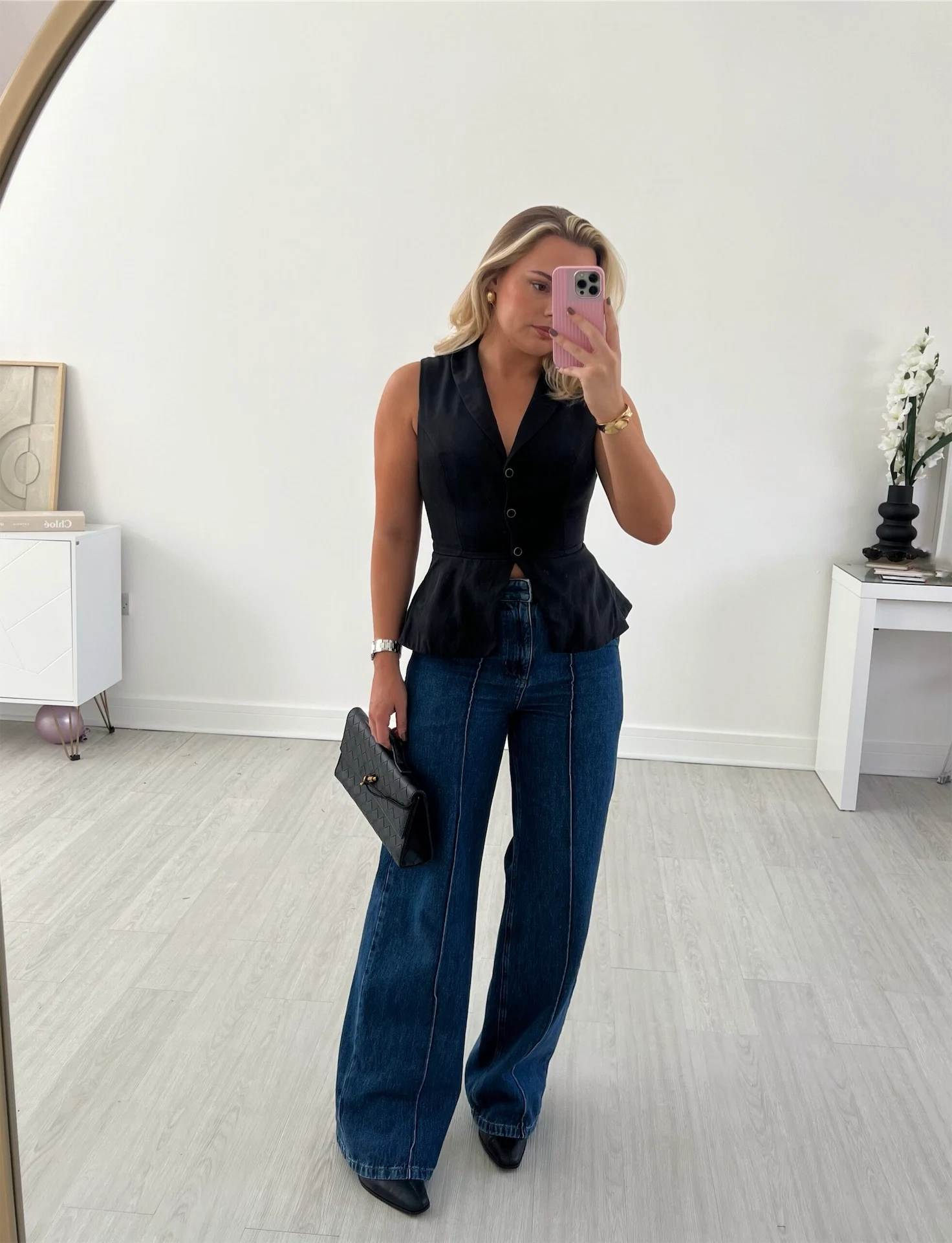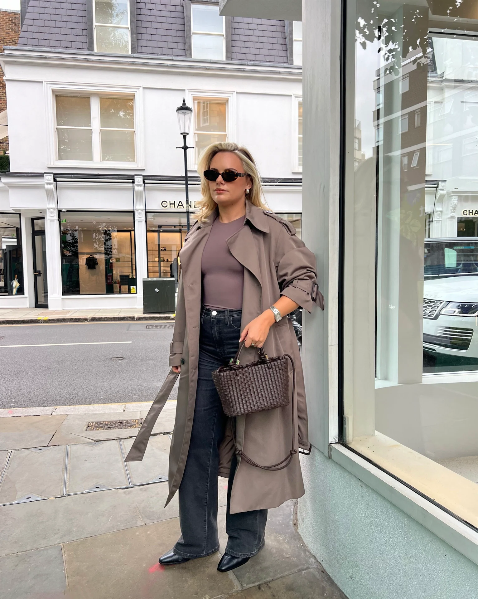 My Monday this week started off with a few press meetings, so I wanted something comfortable yet stylish. I make Canva boards of outfits I want to try and this was on my to-do list. I went for my favourite Frame jeans (the Le Jane Wide Leg) – I’m 5’4 but these jeans make your legs look supermodel long. I like to keep things tonal, especially when I want a professional vibe, so I styled the jeans with this taupe trench from H&M, paired with a matching T-shirt and bag. My trusty Mango boots were the obvious choice for a busy start to the week – I could walk miles in them.