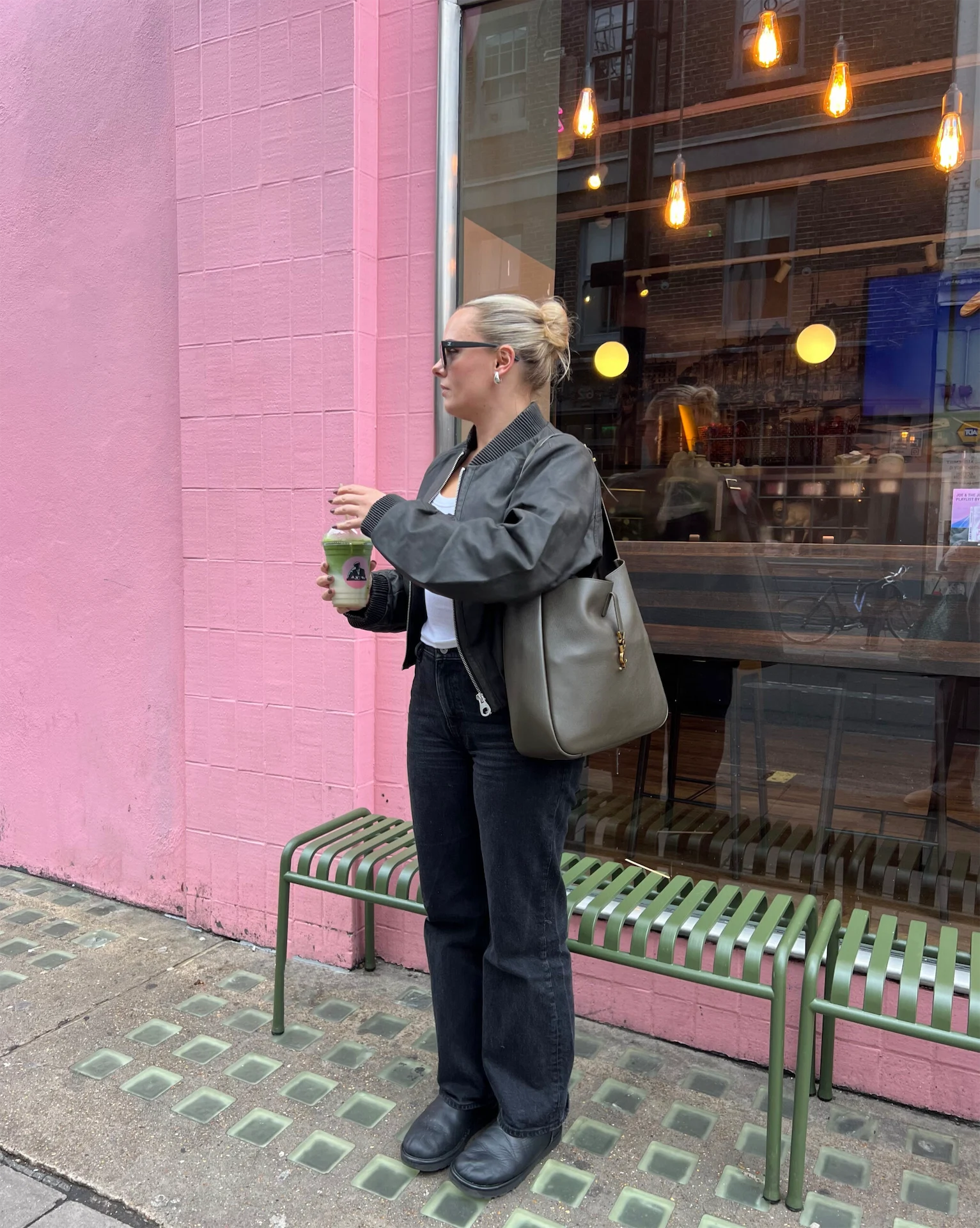 Back to a grey London, so I dressed to match the mood. I saw Rosie Huntington-Whiteley wearing an oversized washed bomber jacket during Paris Fashion Week, which inspired me to pull out one I’ve had for a few years. Today, I was putting together personal shopping links and pulling outfits to shoot in the studio so I needed something I could run around in. This is also my work bag – the YSL Le 5 à 7 supple – that I invested in a few months ago. It fits my MacBook and more, so it’s the perfect size. For me, designer pieces need to be practical, ensuring I get plenty of wear out of them!