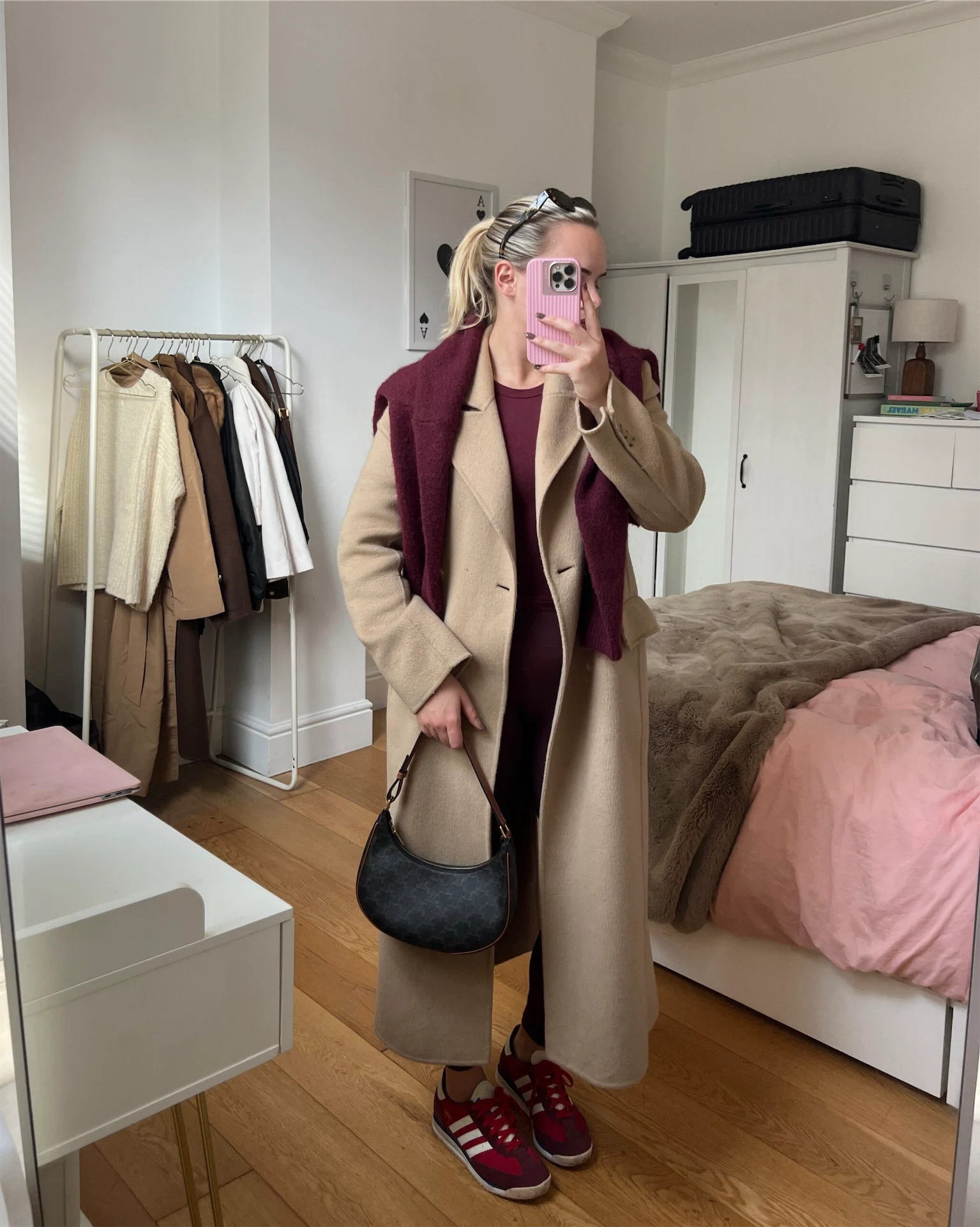 I threw on my wool coat from Mango (bought last year) and it is the cosiest thing – it’s like wearing a hug. Paired with my Adidas SL72s in this cool red colour combo and my Celine Ava bag. This bag is my most worn designer item. It’s grained leather which means it has kept its condition so well – over a year on it’s still like new, even though I wear it most days.