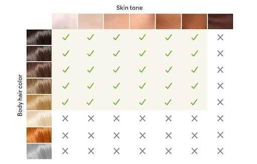 Because IPL targets hair pigment, it is suitable for a wide range of people, from light to medium dark skin tones with hair ranging from natural blonde to dark brown or black. IPL technology is least suitable on very blonde, red, grey or white hair where there is less melanin to absorb the light.