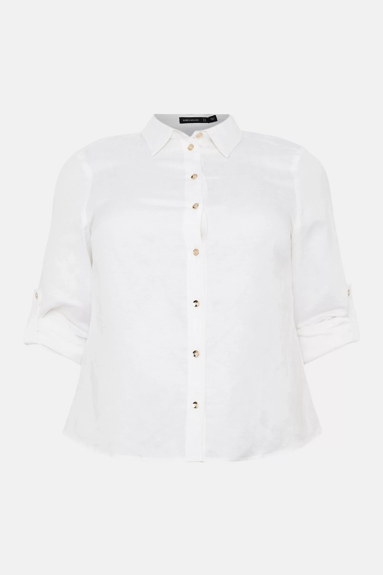 Plus Size Linen Viscose Woven Long Sleeve Shirt, €32.50, Karen Millen