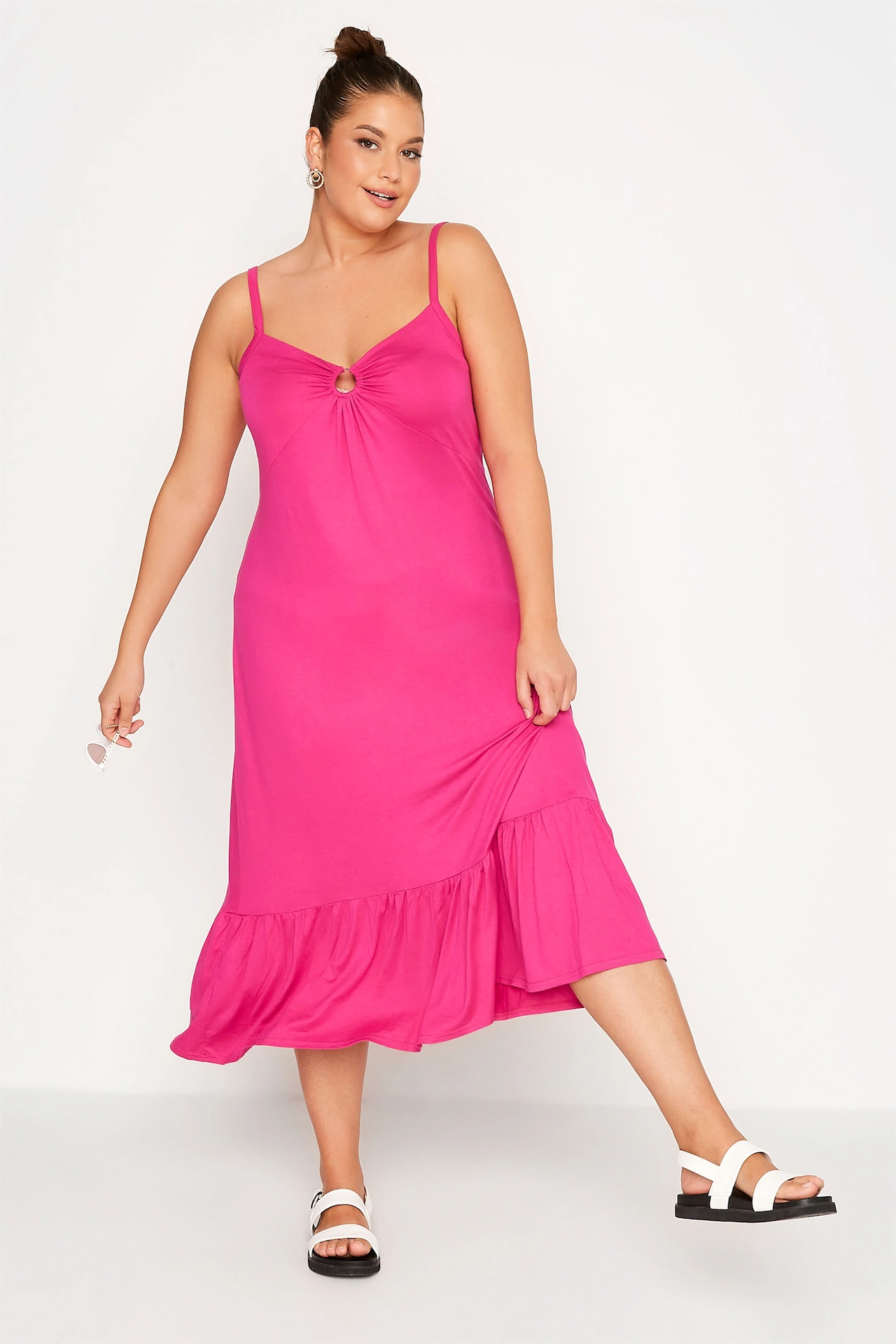 Yours Clothing Curve Hot Pink Ring Detail Midaxi Dress, €38