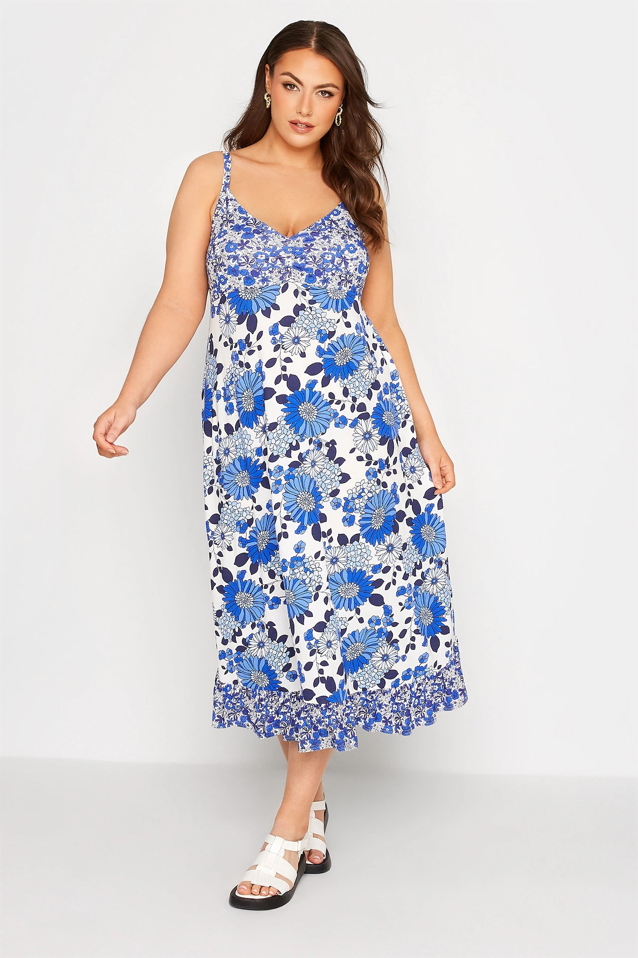 Yours Clothing Curve Blue Floral Print Frill Midaxi Sundress, €41