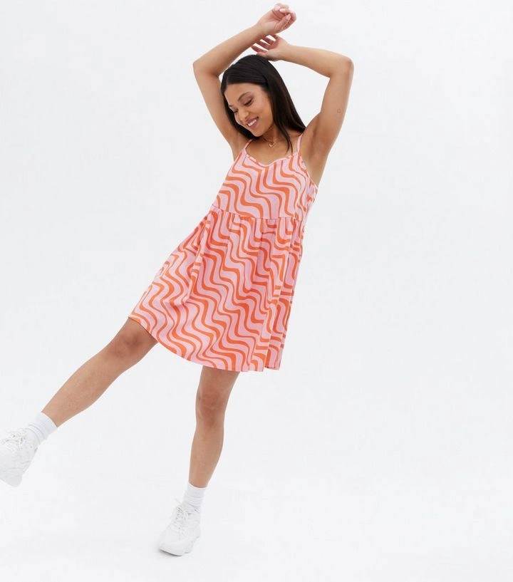 New Look Petite Pink Wave Strappy Mini Smock Dress, €17.24