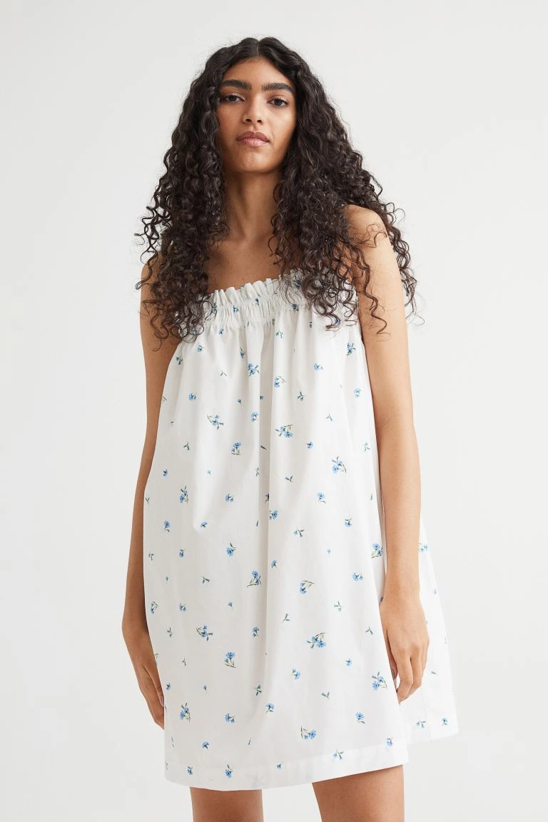 H&M Cotton Dress in White/Blue Floral, €10