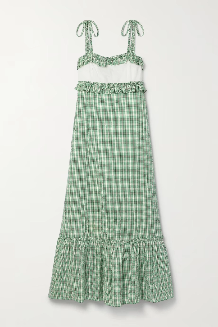 Rixo Annabel Broderie Anglaise-trimmed Checked Cotton-seersucker Midi Dress, €295