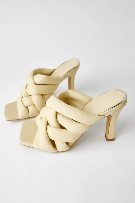 Quilted braided leather heeled mules, €79.95 from Zara