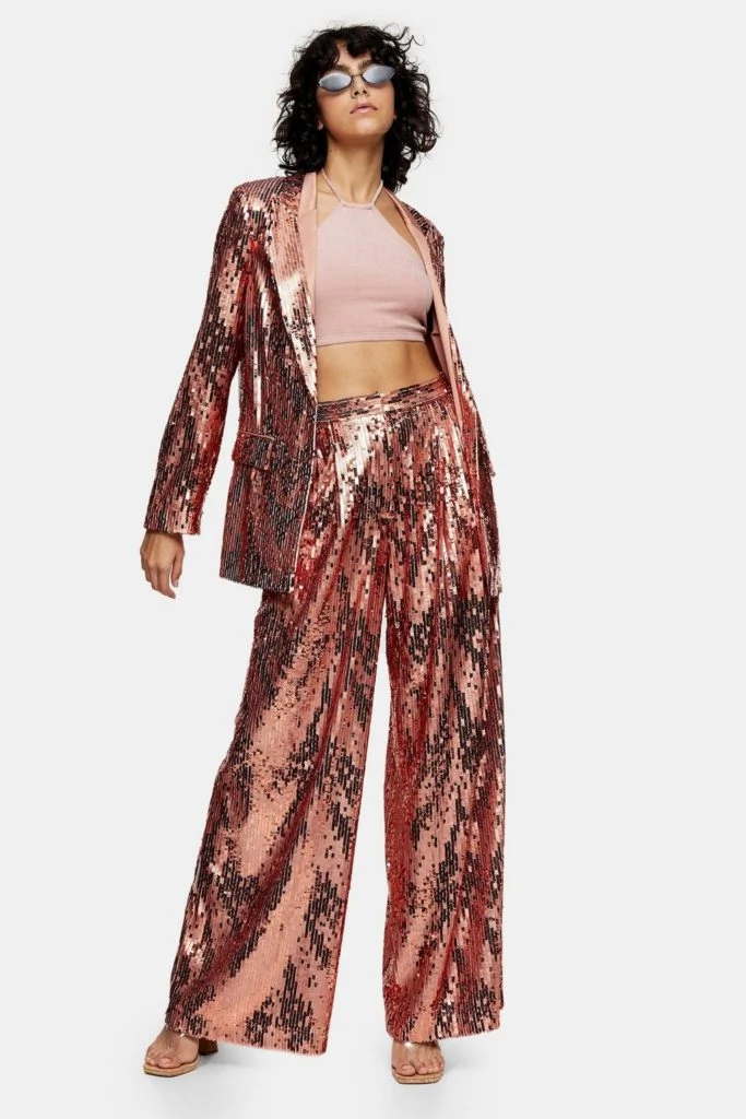 IDOL Copper Sequin Wide Leg Trousers, €80 from Topshop