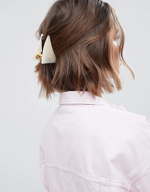 Resin has risen to popular new heights in the accessory world, and this marbled white hairclip is a perfect subtle peek.