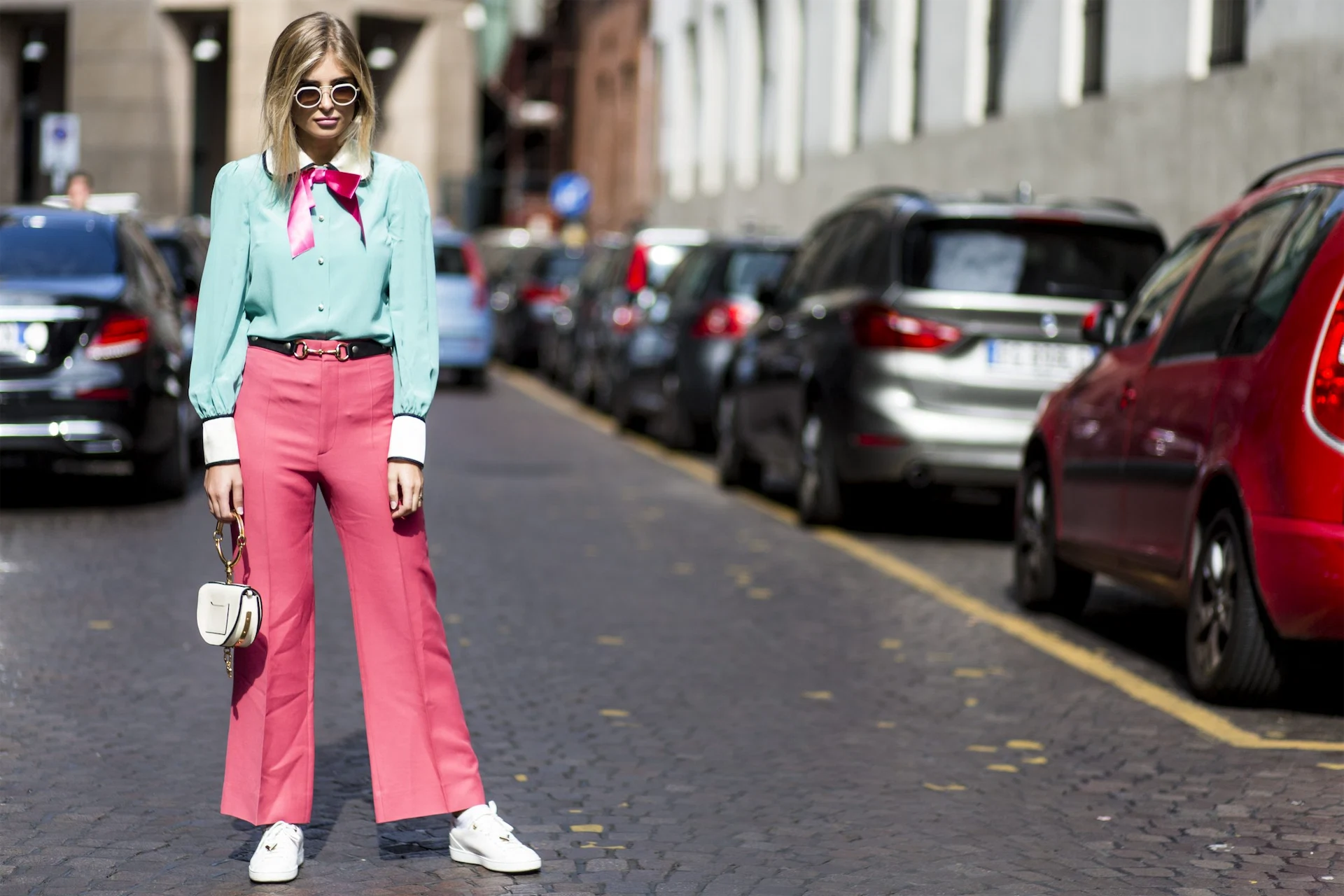 How to wear them? Do it with a sophisticated pencil skirt; hitting the sweet spot between office casual and street-style star. Tailored shorts and high-hitting trainers will offer you respite during hot days (and keep you buoyant!). Pair with pretty socks for a springtime sartorial update. Let chunky outsoles be the life of the party this year in equal parts futuristic and retro nineties (see Calvin Klein, below). When you’ve picked out your favourite pair from our edit below, head back up top and see how our favourite street-style heroines are styling their dad trainers.
