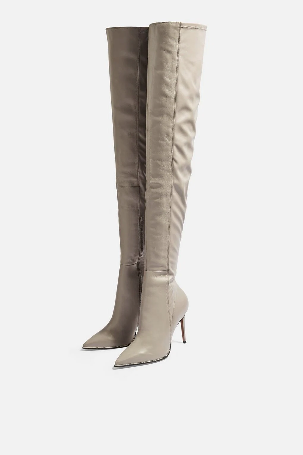 Fabric over-the-knee high heel boots, €59.95 at Zara