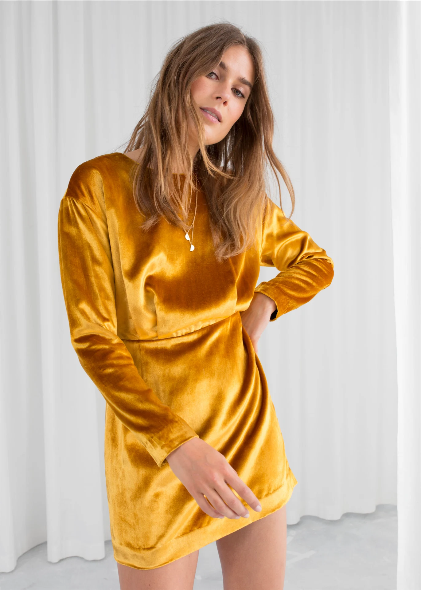 Velvet drape button mini dress, €60 at Topshop