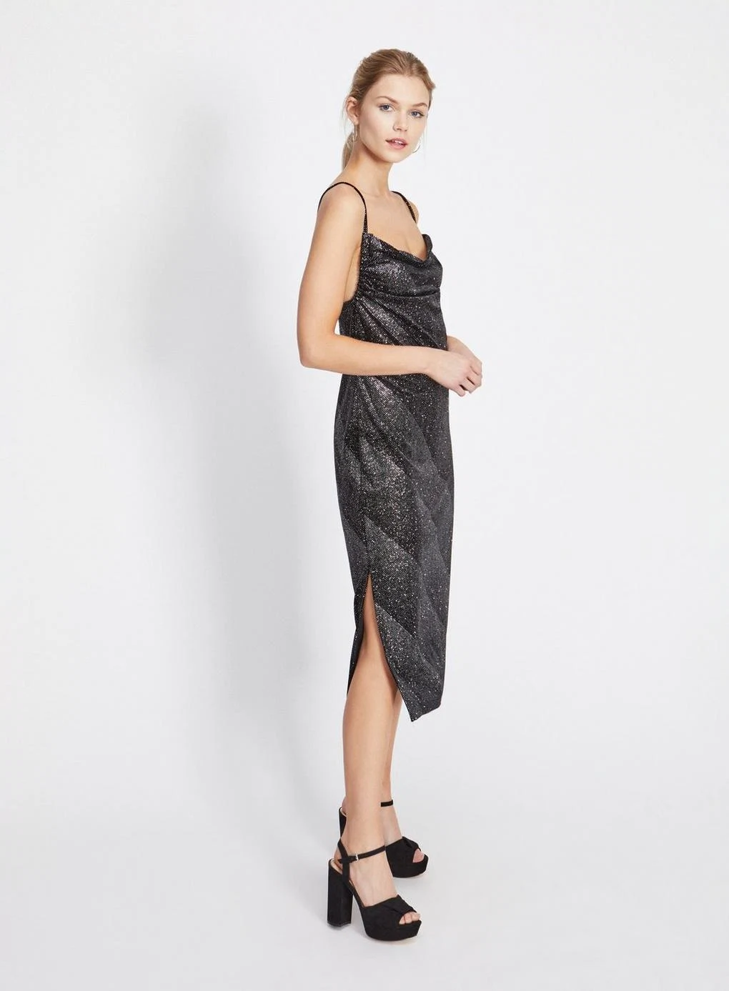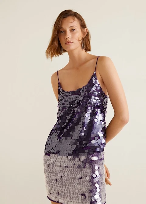 Sequin contrast-bodice dress, €99.99 at Mango