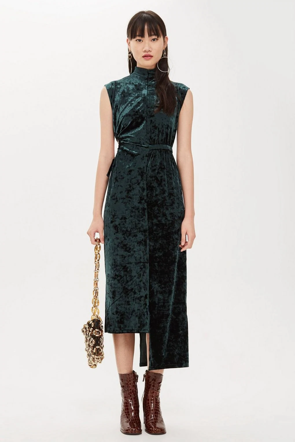 Velvet ruched midi dress, €46 at Topshop