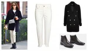 Straight leg white jeans may sound?like the hardest genre of white jean to tackle but per usual, Alexa nails it with a sharp peacoat and some simple Chelsea?boots, making this a very wearable weekend look even for those of us who don’t necessarily look like a gamine French woman.