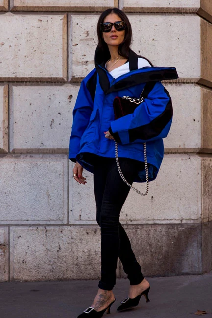 Puff, puffa, puffer: regardless of what you might call this quilted jacket, the more puff, the better. Especially when worn sliding down one shoulder to reveal your chic undergarments.