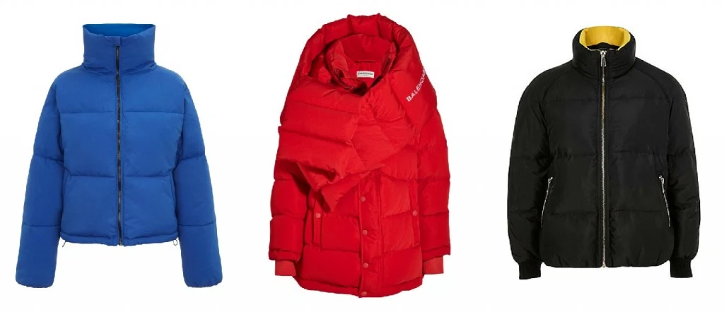 Cropped puffer jacket, €17 at New Look.?Oversized quilted shell jacket, Balenciaga, €2,550 at Net-A-Porter.?Black high neck puffer jacket, €65 at River Island.