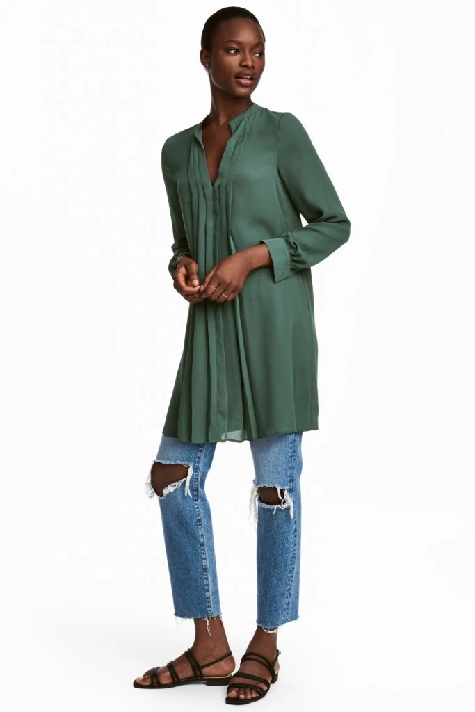I love the colour and versatility of this dress. It looks incredibly chic worn over jeans, but it would look sharp paired with skinny trousers and heels.