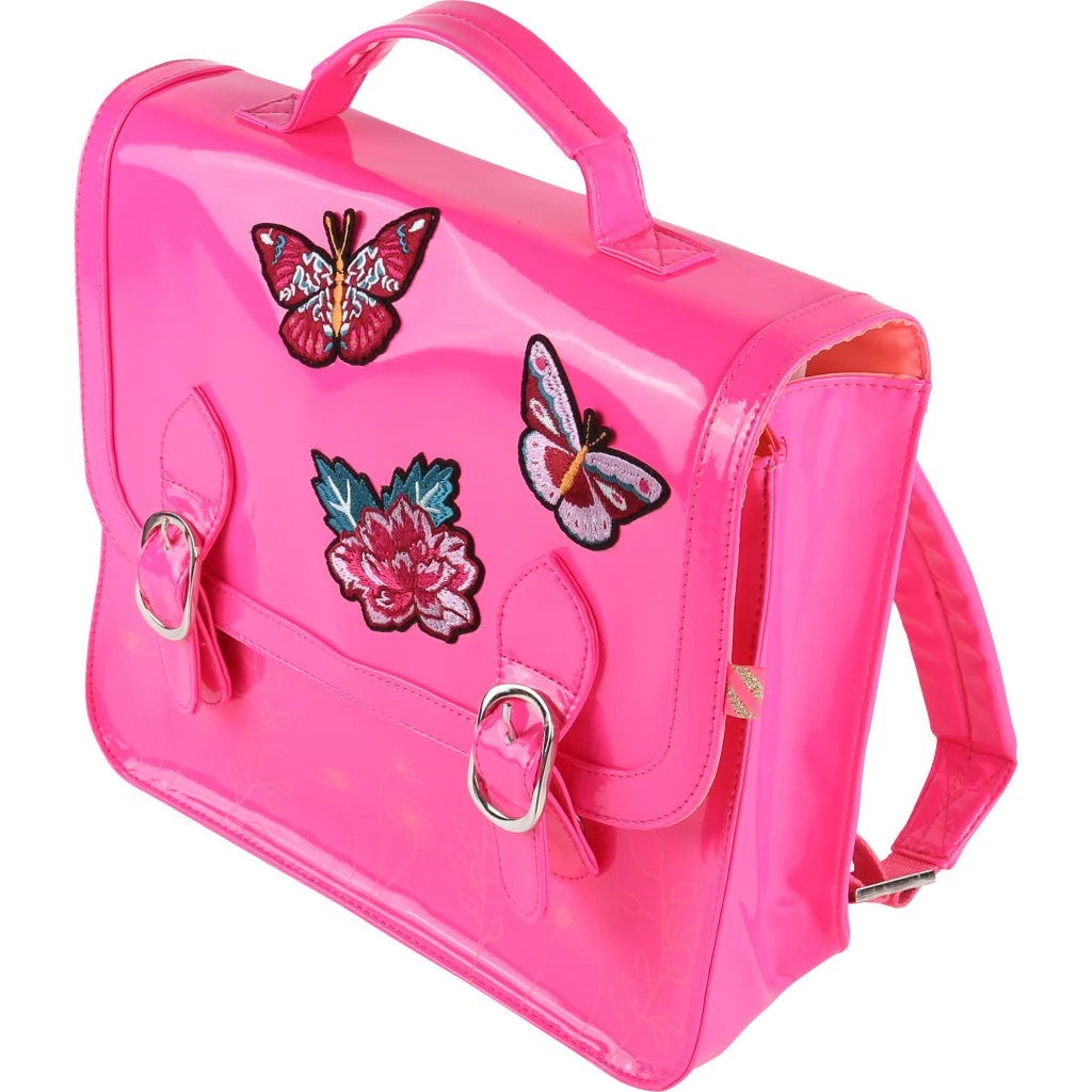 This is a great two-in-one product, perfect for weekdays or weekends. Made with embroidered motifs, flowers and butterflies, this satchel opens to reveal a?colourful orange lining.