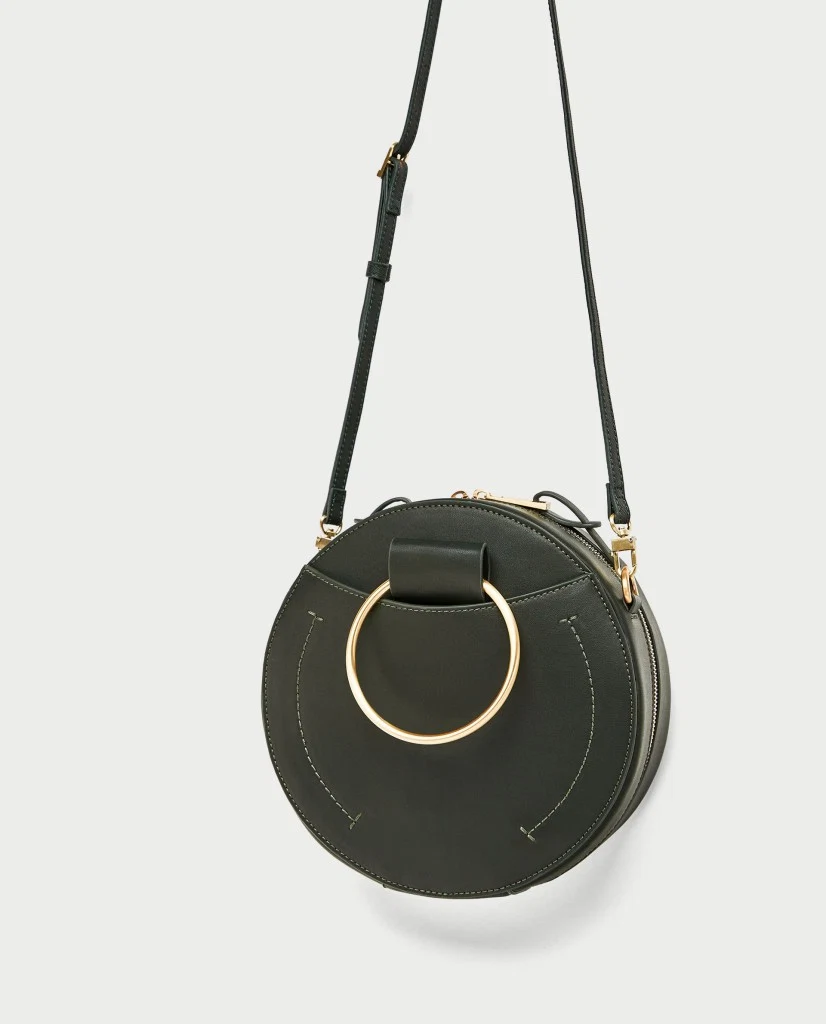 Round cross body bag with metal handles, €39.95 at Zara