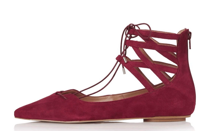 Time to rethink your ballet flats. It’s all about pointy toes and ankle straps now. Elegant and practical, these ones from Topshop will look terrific with everything from cropped trousers to rolled up jeans.
