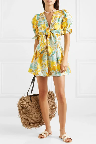 Faithfull the Brand Jamais cropped tie-front floral-print linen top, €154.50 and Ondine floral-print linen shorts, €154.50 from Net-a-Porter