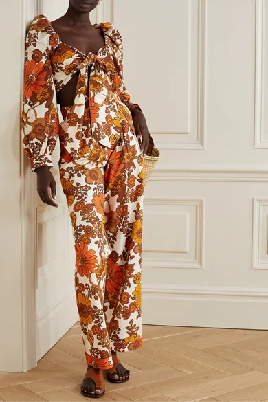 Dodo Bar Or Biby cropped tie-front floral-print cotton top, €260 and Lana floral-print cotton wide-leg pants, €250 from Net-a-Porter