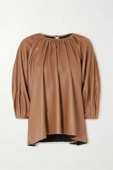 Frankie Shop gathered faux leather top, €125.29, and Pernille pleated faux leather shorts, €148.05, from Net-a-Porter