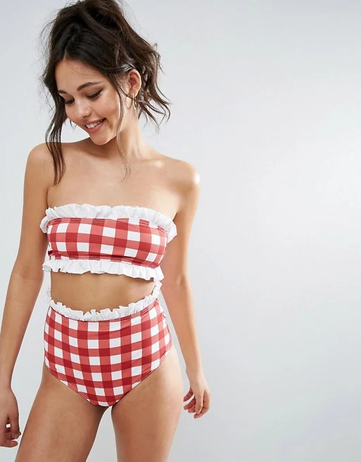 This ASOS Gingham Print Cotton Frill Bandeau Bikini