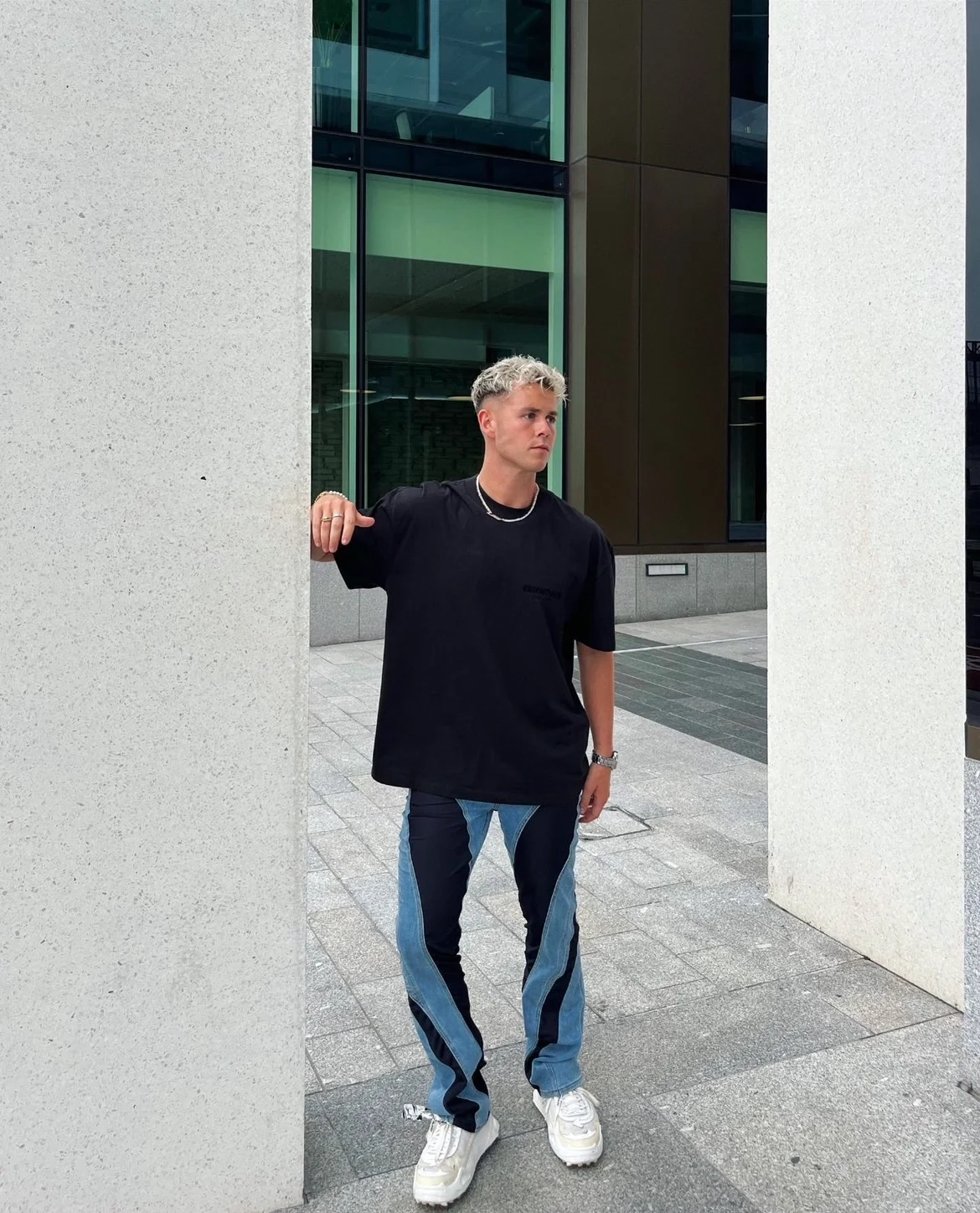 Today I’m out for dinner and headed to a concert which is my favourite kind of evening. If I was to describe my style I would say it is elevated street style, wearing affordable and quality pieces that I usually mix in with a luxury staple item – such as a designer trainer or t-shirt. I’m wearing my Mugler jeans from the Mugler x H&M collection. I had the pleasure of attending the launch in London and these jeans hold some great memories while also making me feel super confident. I paired the jeans with my Essentials oversized tee and Off-White trainers.