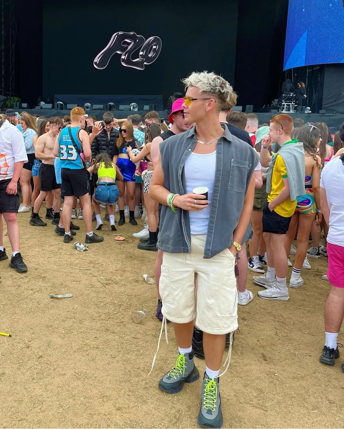 It’s Saturday an it’s festival time. This is my first ever festival so I wanted to make a statement with my look while still staying true to my personal style. My glasses are from Wornwell Vintage in the Penneys Dundrum store, the shirt is Bershka which I DIYed myself and the same Zara cargo shorts. I originally purchased these beautiful ASOS desert boots for Coachella 2020 which never went ahead, so I’m glad they’re finally getting their moment. Honestly this look really came together and made me feel so confident.