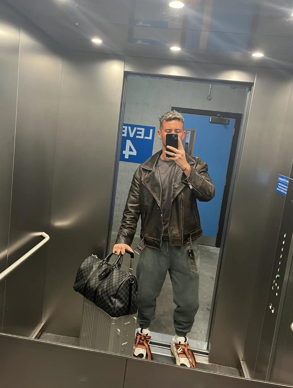 Today I’m teaching dance workshops and judging a competition. I’m wearing a Sandro t-shirt, H&M joggers, my Zara vintage leather biker jacket and my absolute favourite Lanvin trainers to elevate the look. It’s going to be a long day so, again, comfort is very important. I packed a change of clothes for my classes in my Louis Vuitton duffle which is one of my favourite items. It was one of my first-ever designer purchases back in 2015 and it is still serving me well after many flights, rehearsals and trips!