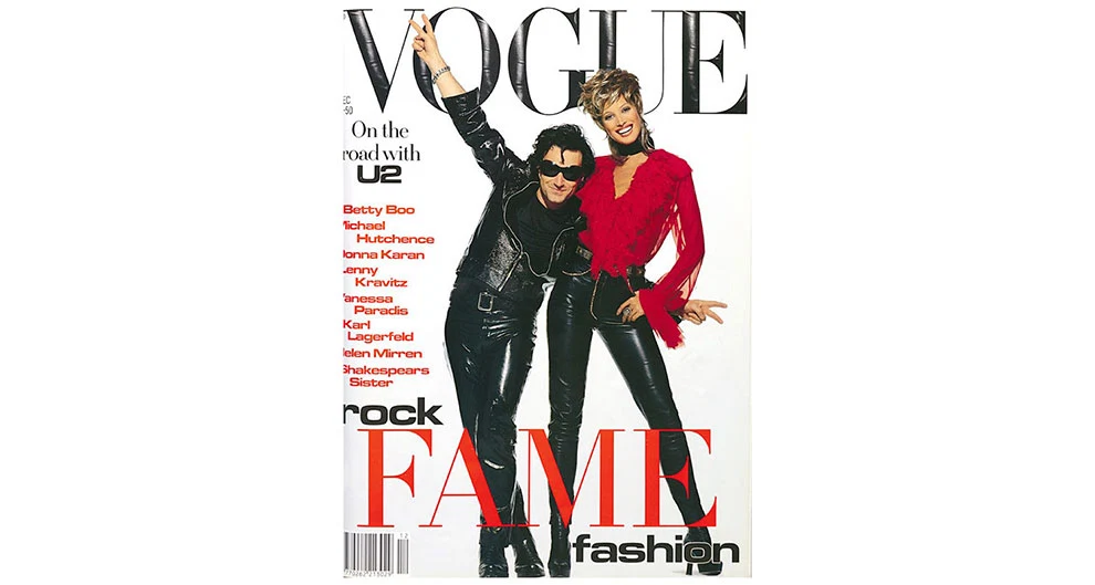 It would be remiss of us not to acknowledge the only Irishman to have ever graced a Vogue cover. One of Alexandra’s earliest covers, in December 1992, features Bono and Christy Turlington for a rock, fame and fashion issue. Bono was just about to embark on U2’s Zooropa tour and Christy was still in demand as one of the world’s highest-paid supermodels.