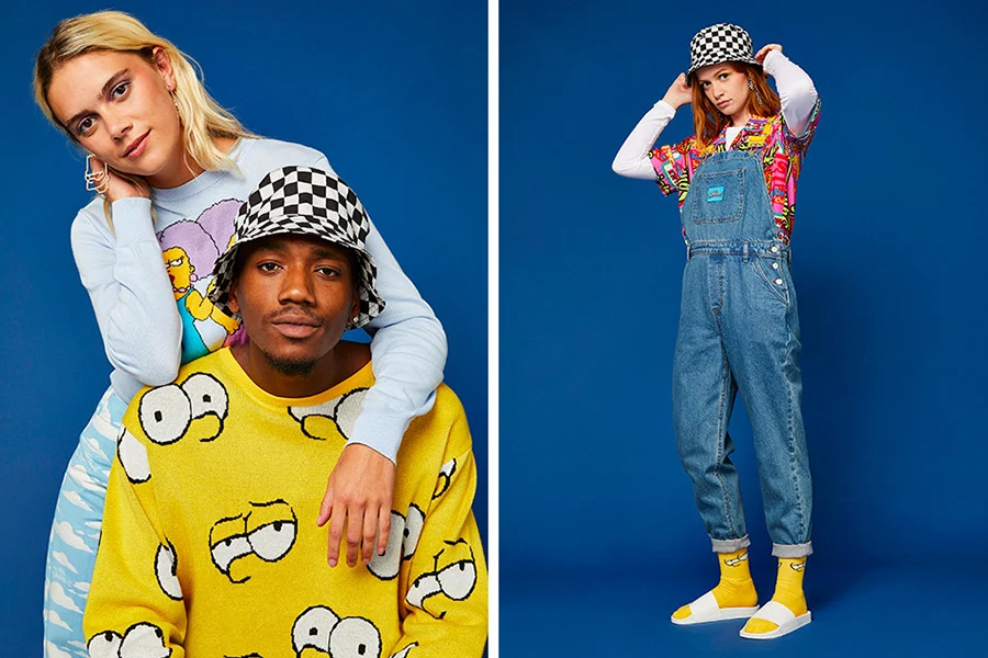 Celebrating the Simpsons’ reign as TV’s longest-running primetime scripted show in history, the streetwear collection features appearances from all our favourite characters, including Lisa, Bart, Patty & Selma and so many more. Over on ASOS, you’ll find the fluffy Springfield clouds laid over on-trend faded denim; Lisa-shaped gold hoop earrings; Patty & Selma knitted jumpers and plenty of yellow-skinned prints on everything from swimwear to tote bags.