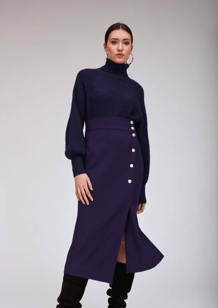 Midnight blue midi skirt, Tara Jarmon, €220 at Arnotts