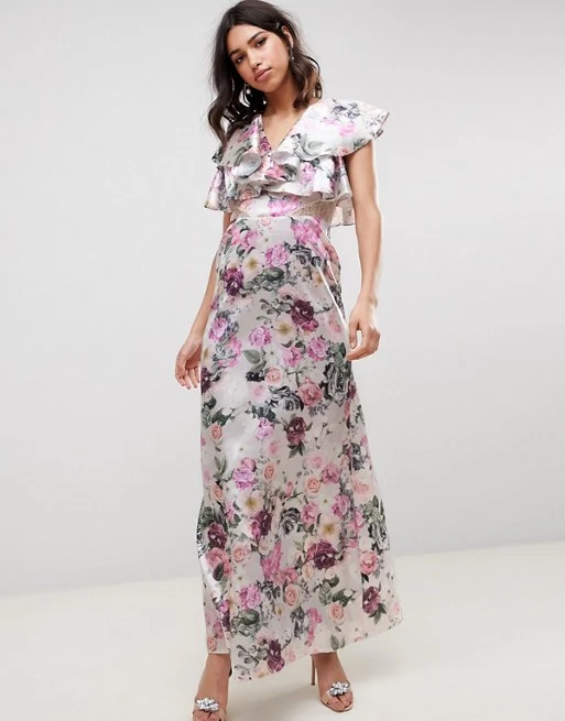 ASOS Design lace insert ruffle maxi dress in pretty floral print, €27.65 at ASOS