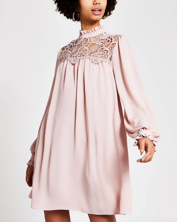 Pink lace high neck mini smock dress, €50 at River Island