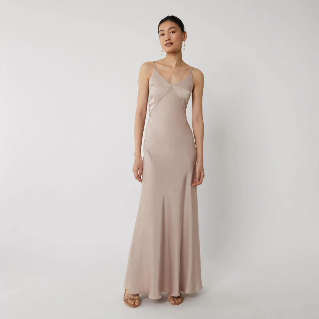 Satin cami bridesmaid dress, €100 at Warehouse