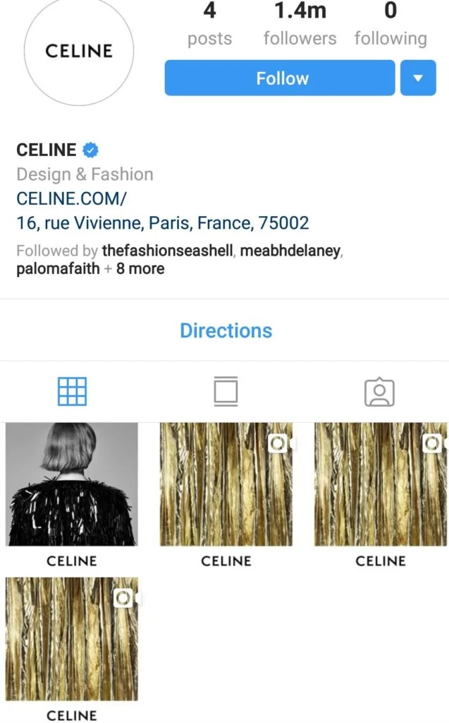 In a move to create even more buzz around the highly anticipated first show after the departure of landmark designer Phoebe Philo, Céline has dropped the accent from its logo, along with all traces of past collections from its Instagram account, leaving only its new logo, a cryptic series of videos of gold lamé curtains and brief explanations of its new typeface.
