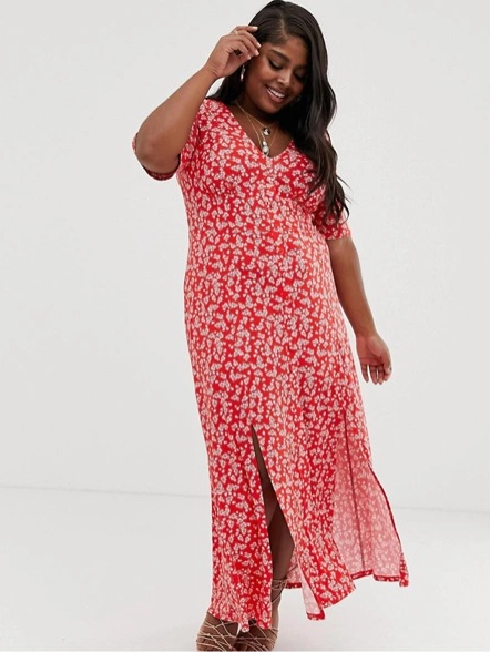 ASOS DESIGN Curve button through maxi tea dress with splits in ditsy print, €48.39 from ASOS