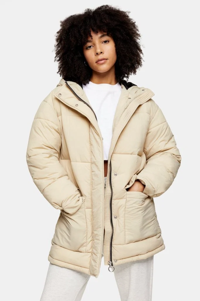 Ecru padded puffer jacket, €89 at Topshop