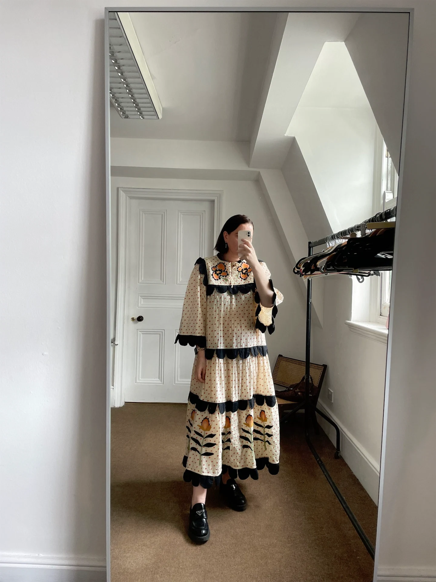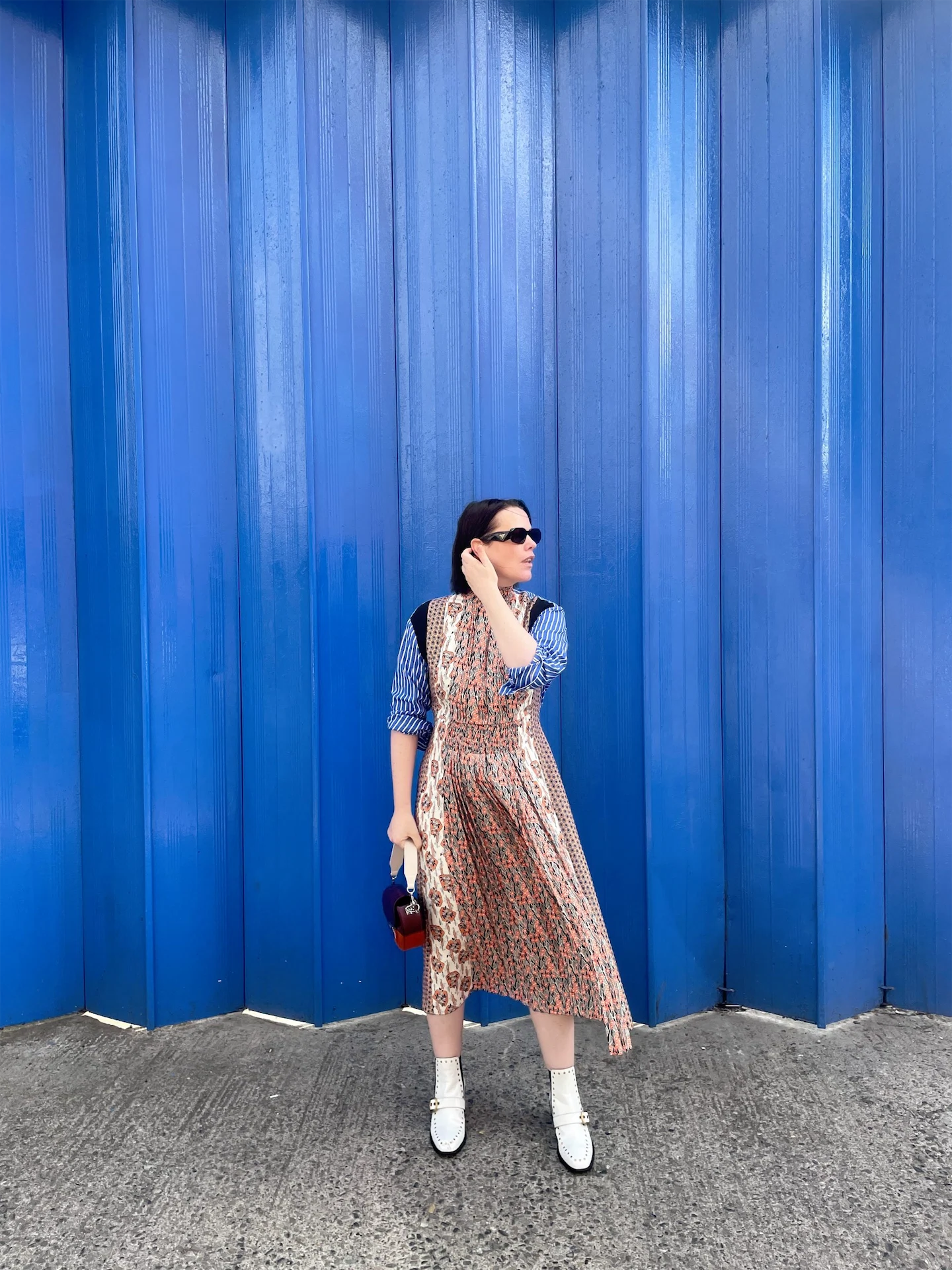 Another day, another dress. Had to pop into the office to file an article ahead of a busy week, and then I’m going for brunch after, so I made a little effort with this Stella Nova dress from Atterley and my Prada loafers. I love the oversized fit of this dress, perfect for the warm weather as it’s so loose and wafty. I don’t have a separate work/weekend wardrobe, which I like. All my looks blur across the week. Sometimes I can be more pared back during the week, and more dressed up on Sundays when others are casual. I love having the flexibility and freedom to wear what I want, and it also means you wear your clothes more and get your CPW (cost per wear) as you don’t have to regulate pieces to certain days. With offices becoming more casual and hybrid working environments, many people will be in the same position. We need to wear the clothes we own more and not leave them cluttering up our wardrobe, so it’s vital to think about the different ways we can wear our clothes and not incorporate them into different scenarios. When you are purchasing a new item, think of three different ways you can style the piece with your own clothes. If you can’t muster up at least three ways of slotting it into your wardrobe rotation, it’s probably not a good investment.
