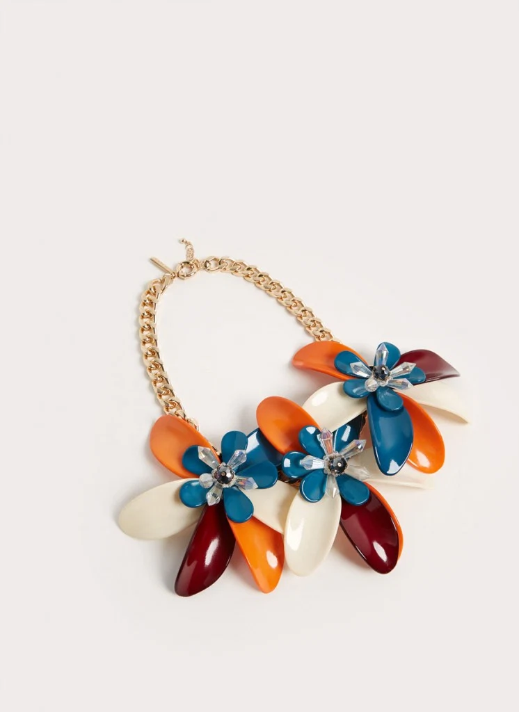 Floral multi-coloured bib necklace, €99 at uterque.com