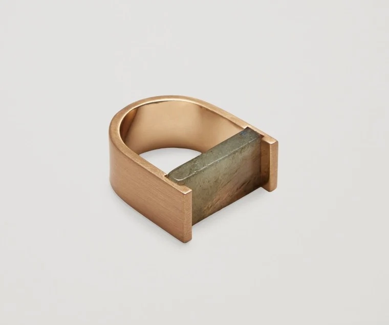 Cos has a very contemporary, abstract aesthetic, which I love. The stone inset in this ring adds texture to the brushed metal which makes for a?fabulous piece that will attract any design lover’s eye.