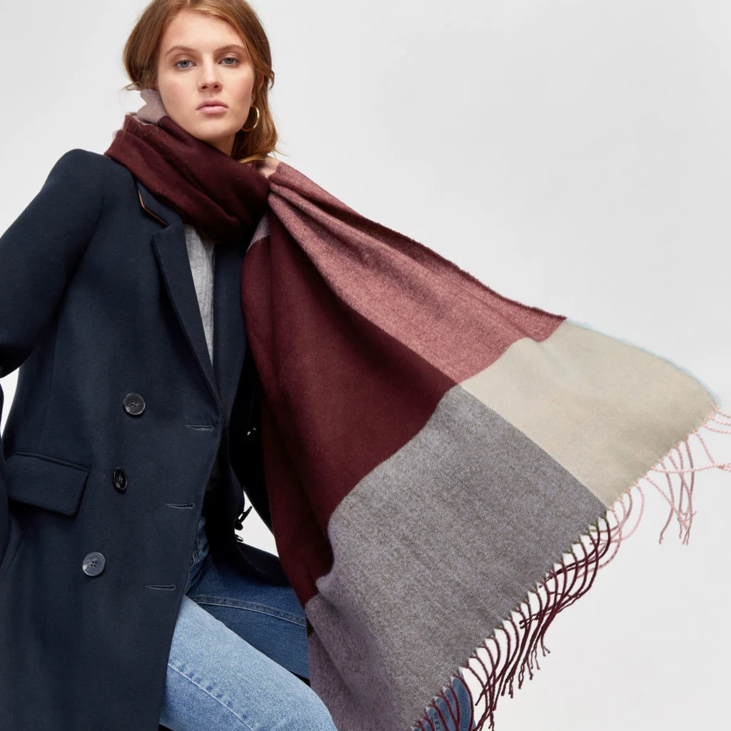 It’s fair to say I like most clothes oversized in winter. I love that feeling of almost being overwhelmed by warm woollens and cosy textures. The size and shades of this Warehouse scarf are perfect. An XL scarf has so much versatility which means it can add freshness to an outfit in lots of different ways.