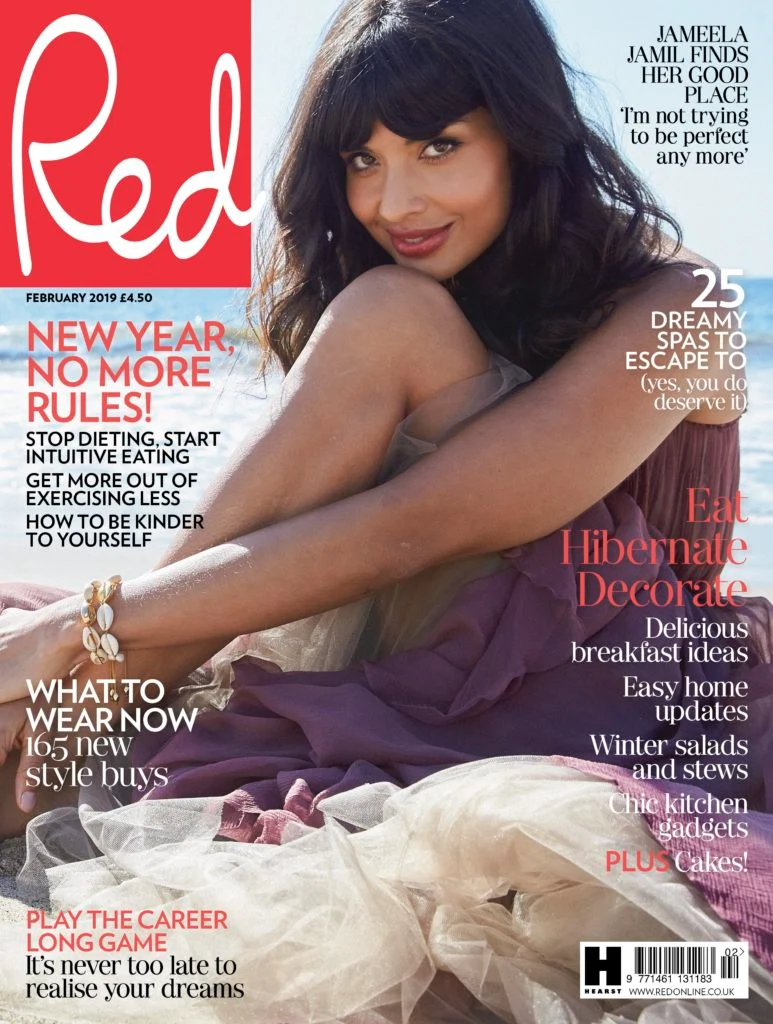 The unretouched cover of Red featuring model Jameela Jamil.