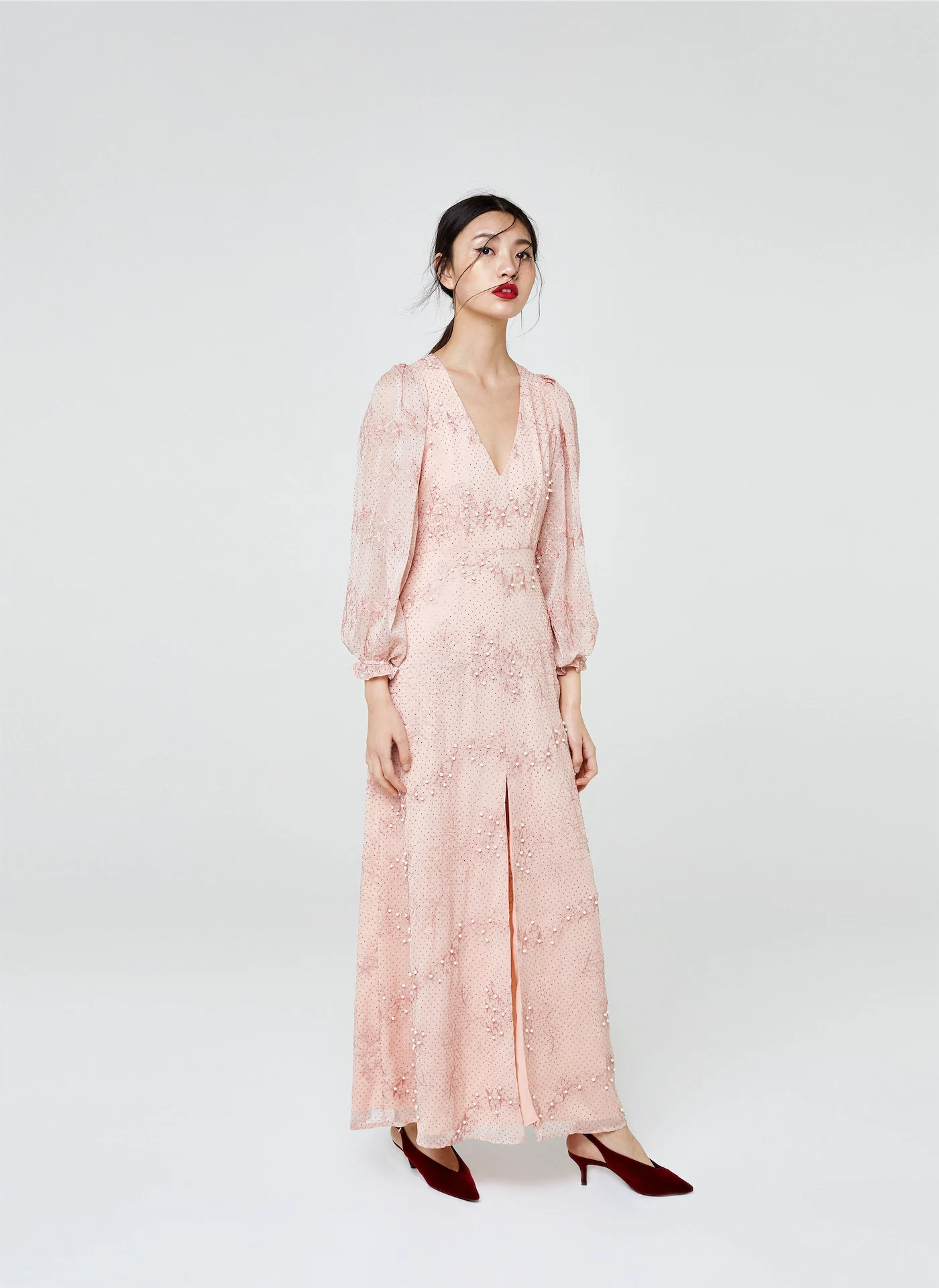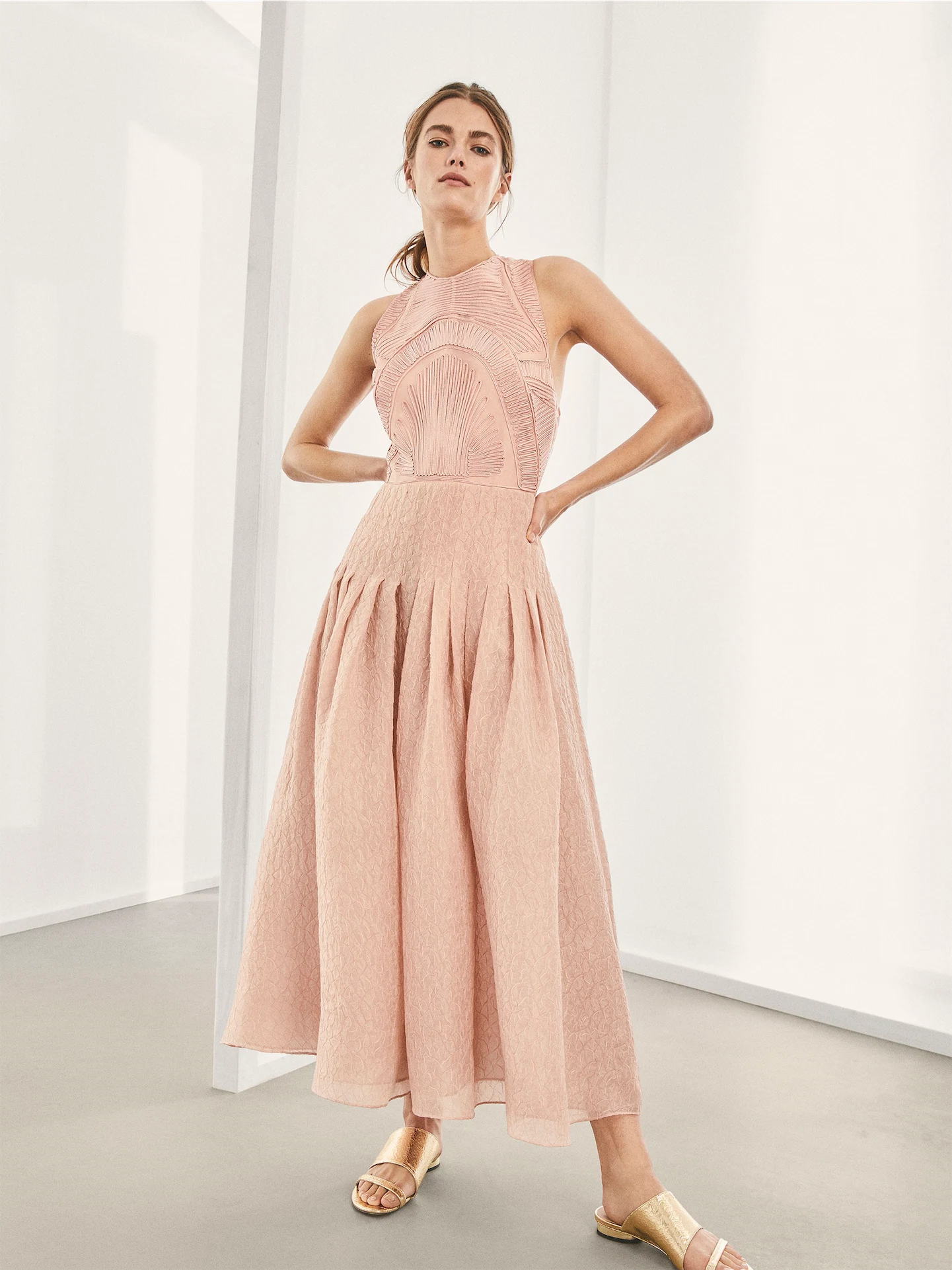 Limited edition textured weave embroidered silk dress, €349 at Massimo Dutti