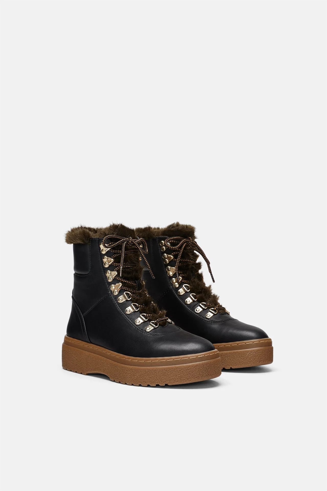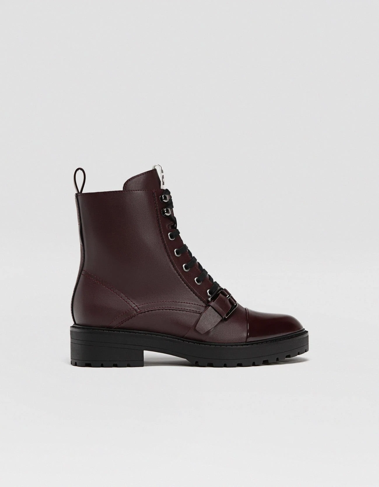 Maroon lace-up biker ankle boots, €45.99 at Stradivarius