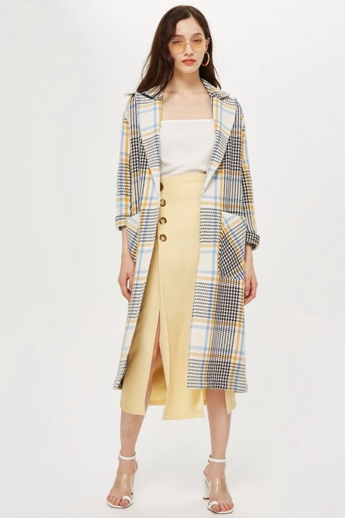 Checks are always a strong story for autumn/winter, but this season they’re especially dominant. Most iterations, however, come in muddy hues and masculine silhouettes. But this gorgeous option from Topshop is so fresh and pretty, but totally on trend nonetheless. Just because it’s styled below with yellow and white, don’t think you can’t wear this coat with deeper, more autumnal hues. It will layer beautifully over tans, mustards, blues and burgundys.